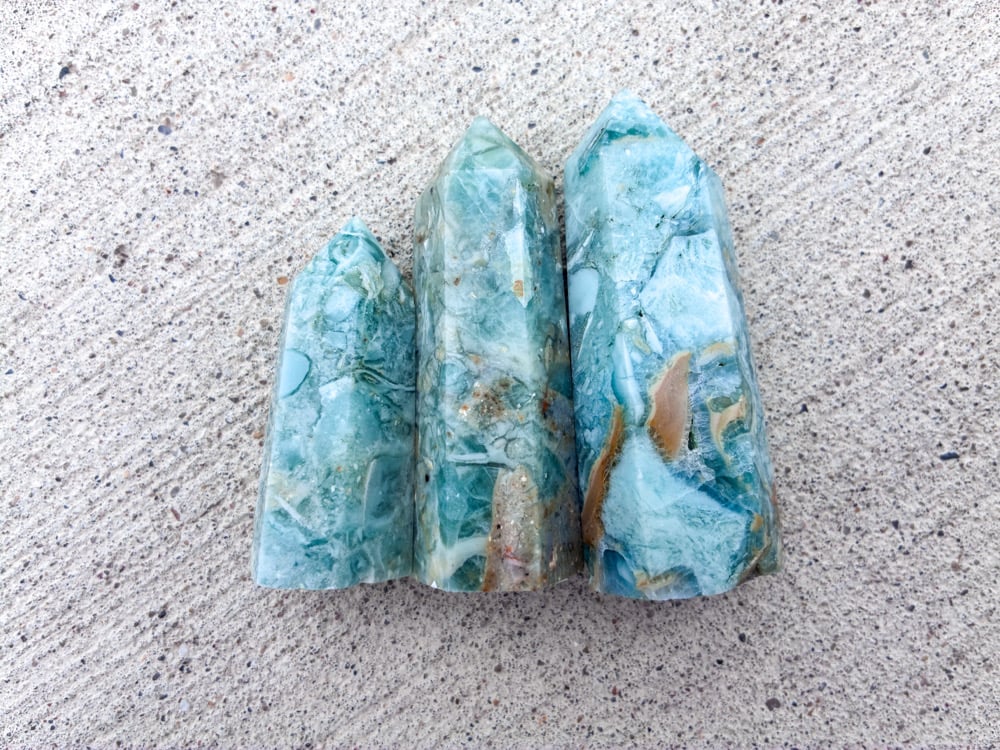“Regular” Fluorite is great for bringing wisdom, focus, and calming anxiety. Green Opalized Fluorite is great for bringing wealth, prosperity, and heart-to-heart connections.